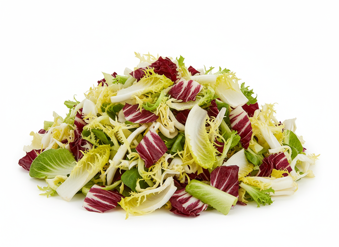 • Zuckerhut, Nüsslisalat Rosso, Frisée, Kabis rot julienne,